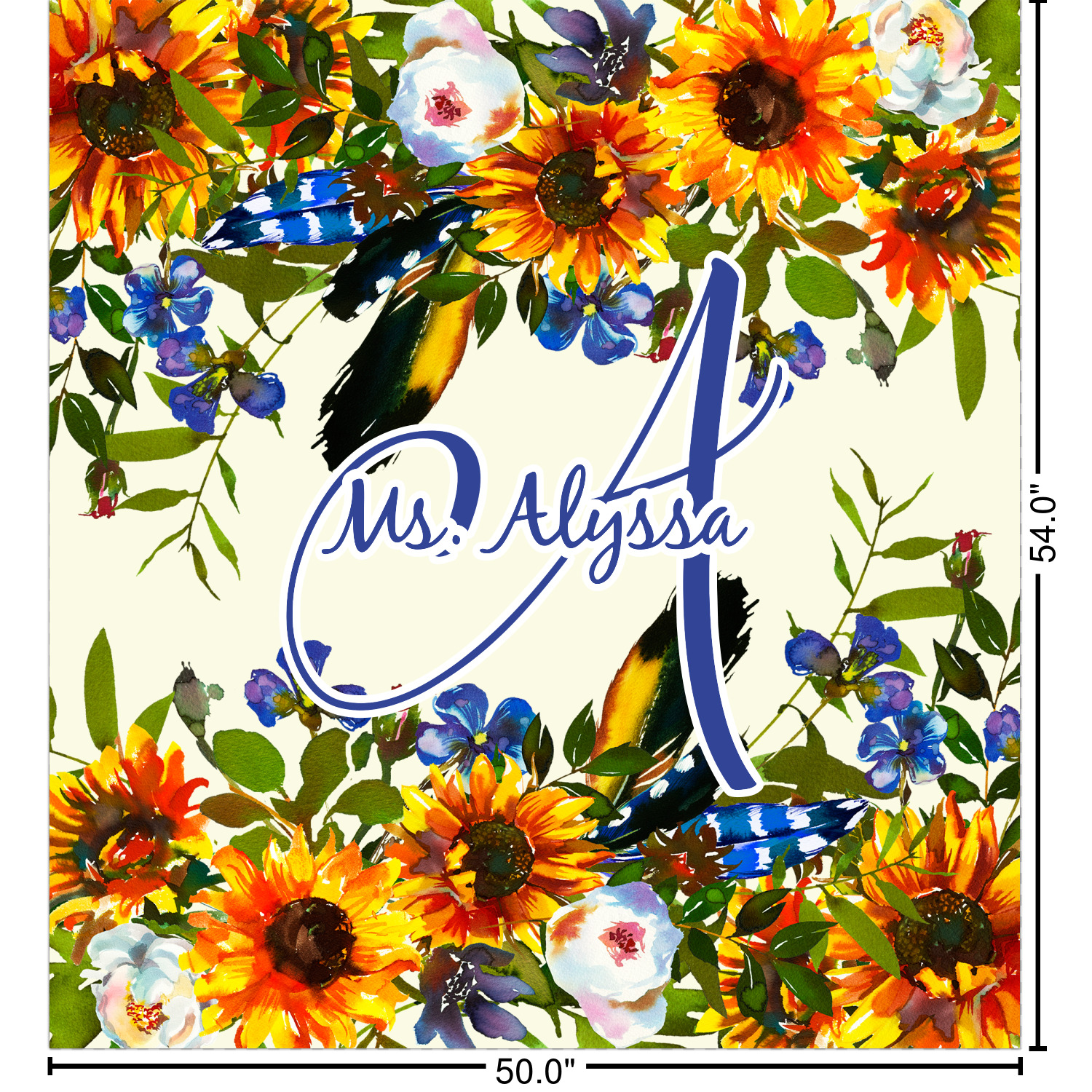 This sunflowers design template is simply beautiful. We chose to personalize it with a name & initial for the main design. We used the blue from the flower in the design and a really pale yellow background.