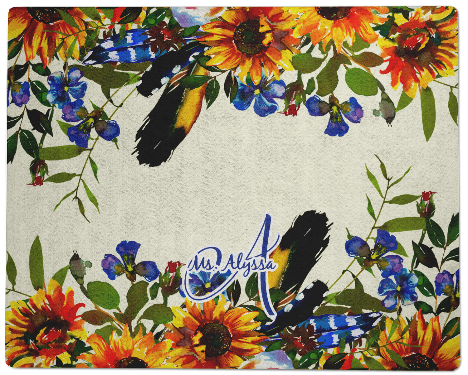 This sunflowers design template is simply beautiful. We chose to personalize it with a name & initial for the main design. We used the blue from the flower in the design and a really pale yellow background.