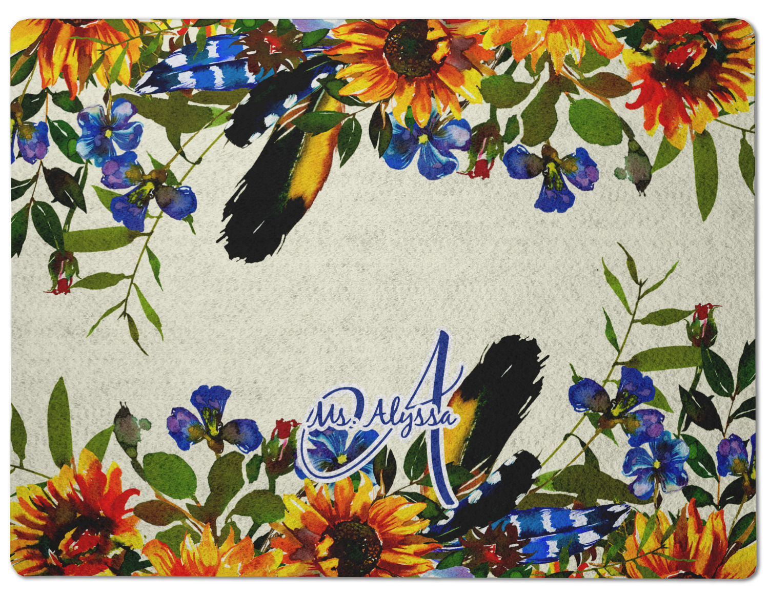 This sunflowers design template is simply beautiful. We chose to personalize it with a name & initial for the main design. We used the blue from the flower in the design and a really pale yellow background.