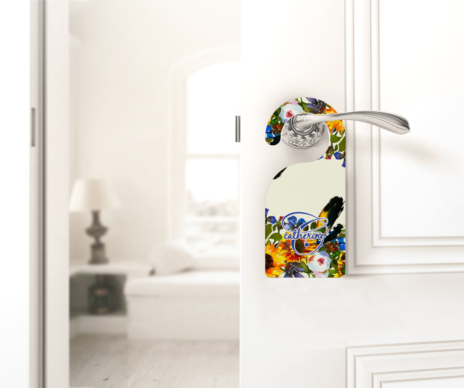 Decorate your door handles with one of our door hangers! These multi-purpose doorknob hangers can be used in a variety of situations; kids can use them to mark their rooms, parents can use them to keep privacy, and they can be used on the doors of nurseries to indicate when the baby is sleeping. Customize a few for some of the rooms in your house today! You could even give these as gifts; give one to the newlyweds in your life, or to a college student so they can use them in their dorm!