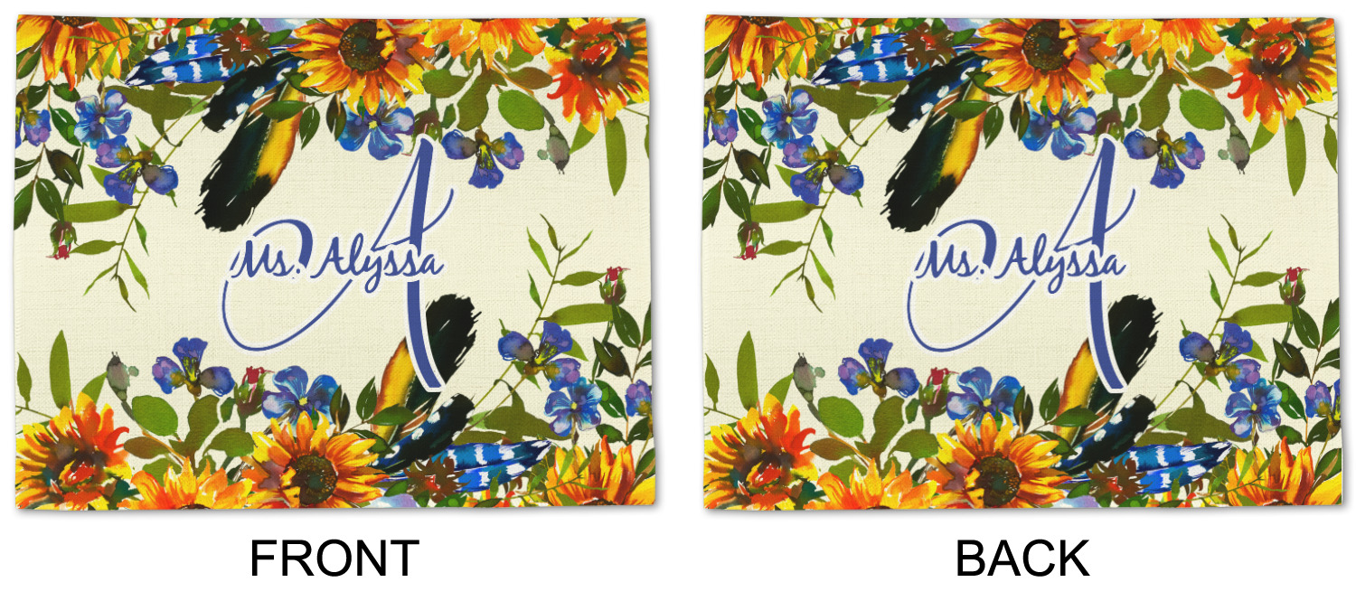 This sunflowers design template is simply beautiful. We chose to personalize it with a name & initial for the main design. We used the blue from the flower in the design and a really pale yellow background.