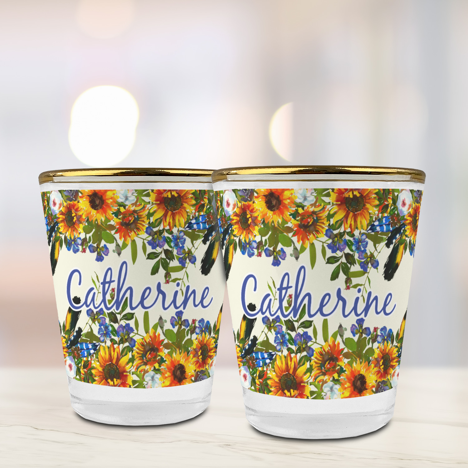 Made with frosted glass, these shot glasses are printed in full color with the design of your choice. They are a standard 1.5oz shot glass and are 2.4" tall. The print is wrapped around the shot glass in a full wrap and boldly displays your customization.