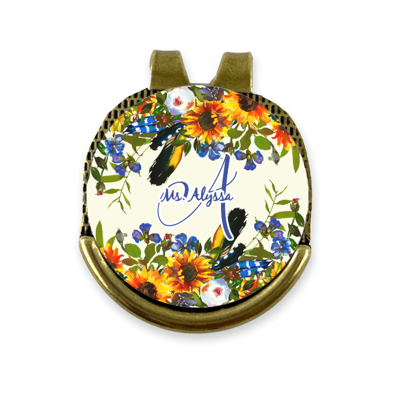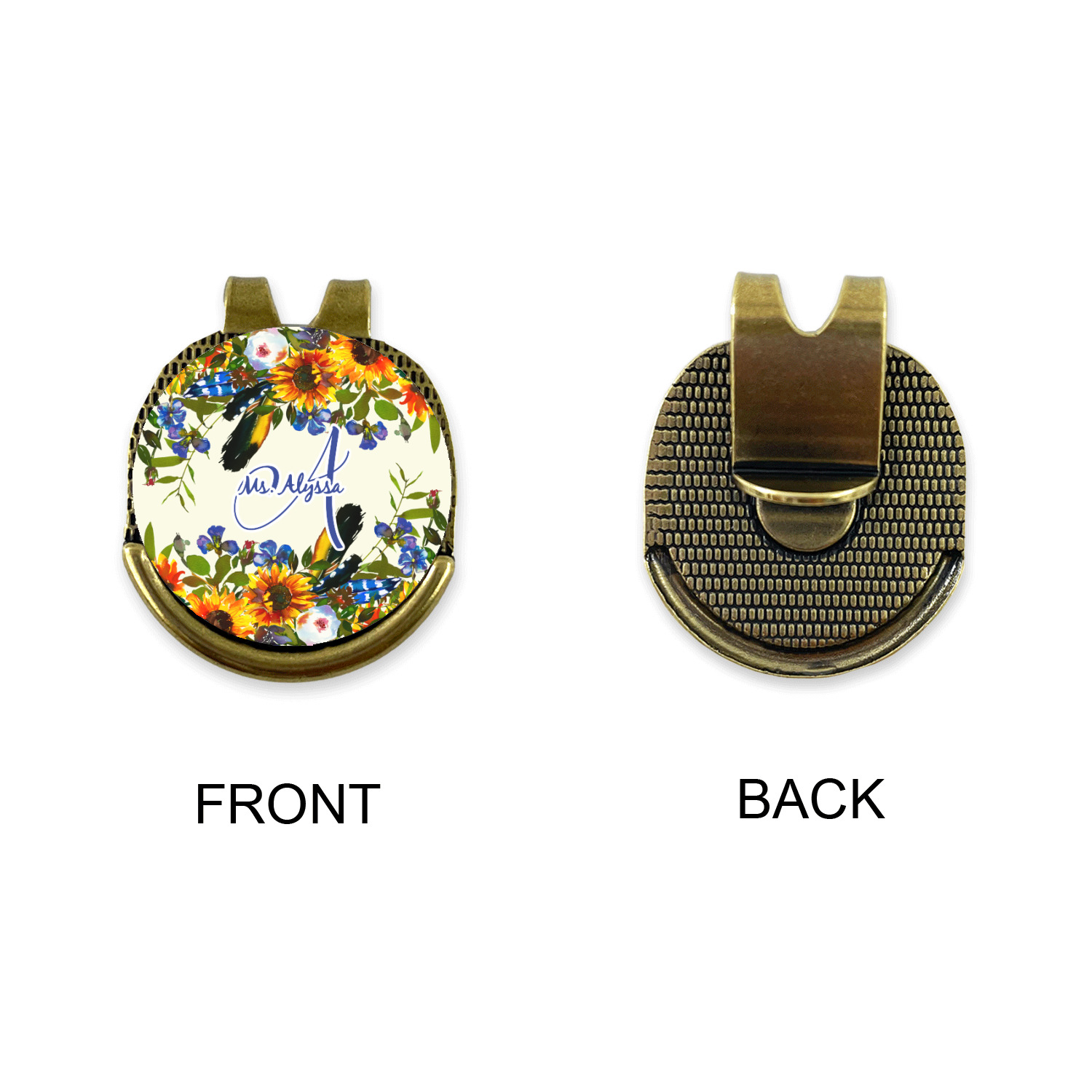 This round shaped little clip is simply 1.25" x 1.5". A clip wraps around to the back of the ball marker holder in order to be able to clip it to the bill of your hat or even your belt. The metal ball marker attaches by a magnet on the clip. Available in stainless steel natural finish or gold finish, you are sure to find one to suit your style. This makes for convenient removal when you need to use it. No more digging in your bag or pockets trying to find it!