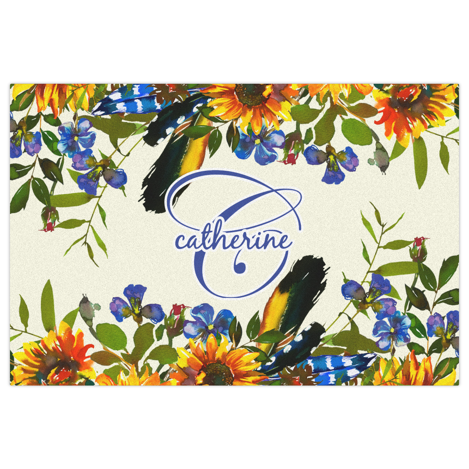 This sunflowers design template is simply beautiful. We chose to personalize it with a name & initial for the main design. We used the blue from the flower in the design and a really pale yellow background.