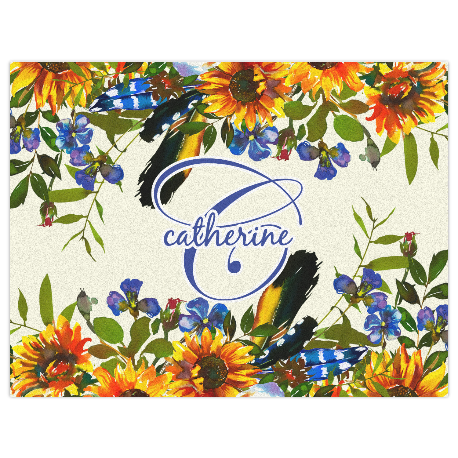 This sunflowers design template is simply beautiful. We chose to personalize it with a name & initial for the main design. We used the blue from the flower in the design and a really pale yellow background.