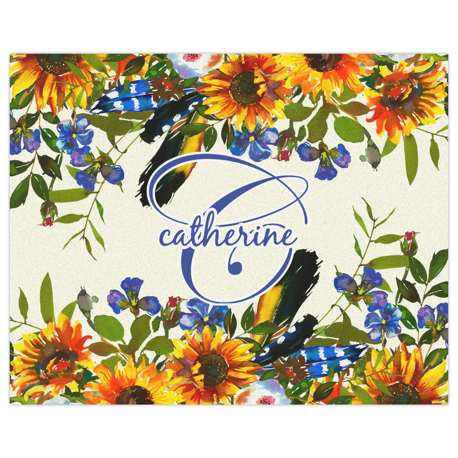 This sunflowers design template is simply beautiful. We chose to personalize it with a name & initial for the main design. We used the blue from the flower in the design and a really pale yellow background.