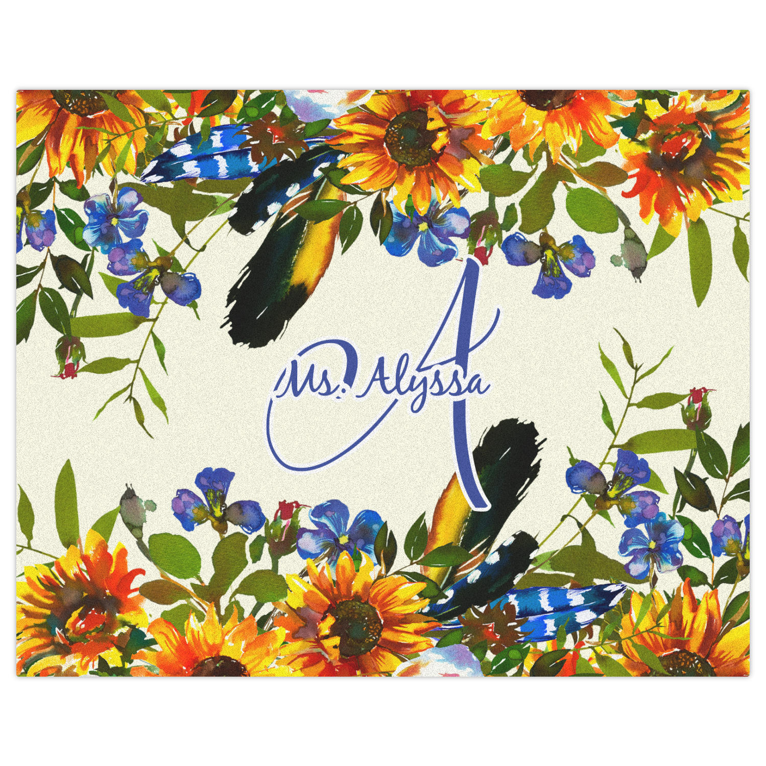 This sunflowers design template is simply beautiful. We chose to personalize it with a name & initial for the main design. We used the blue from the flower in the design and a really pale yellow background.