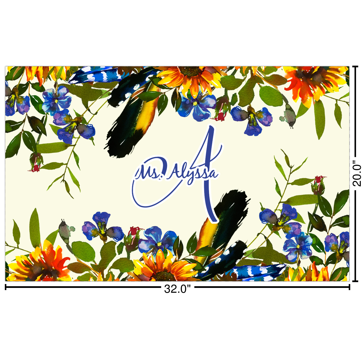 This sunflowers design template is simply beautiful. We chose to personalize it with a name & initial for the main design. We used the blue from the flower in the design and a really pale yellow background.