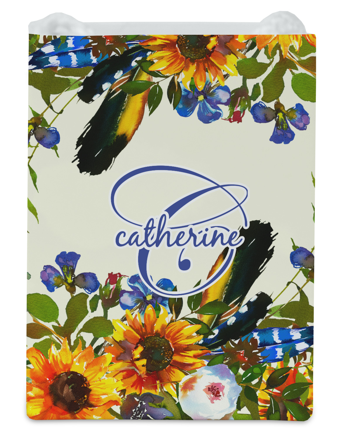 This sunflowers design template is simply beautiful. We chose to personalize it with a name & initial for the main design. We used the blue from the flower in the design and a really pale yellow background.