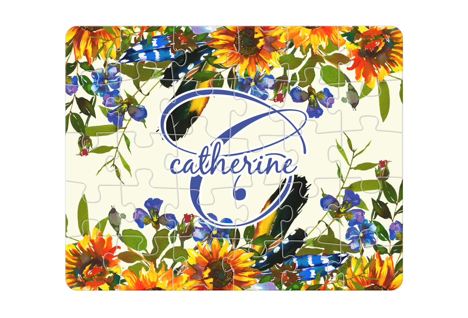 Depending on the look you are trying to achieve, you can add; a thematic pattern or background, with a photo in a frame and text or personalization to your puzzle. Basically if you can imagine it, you can design it!