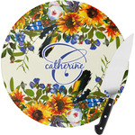 This sunflowers design template is simply beautiful. We chose to personalize it with a name & initial for the main design. We used the blue from the flower in the design and a really pale yellow background.