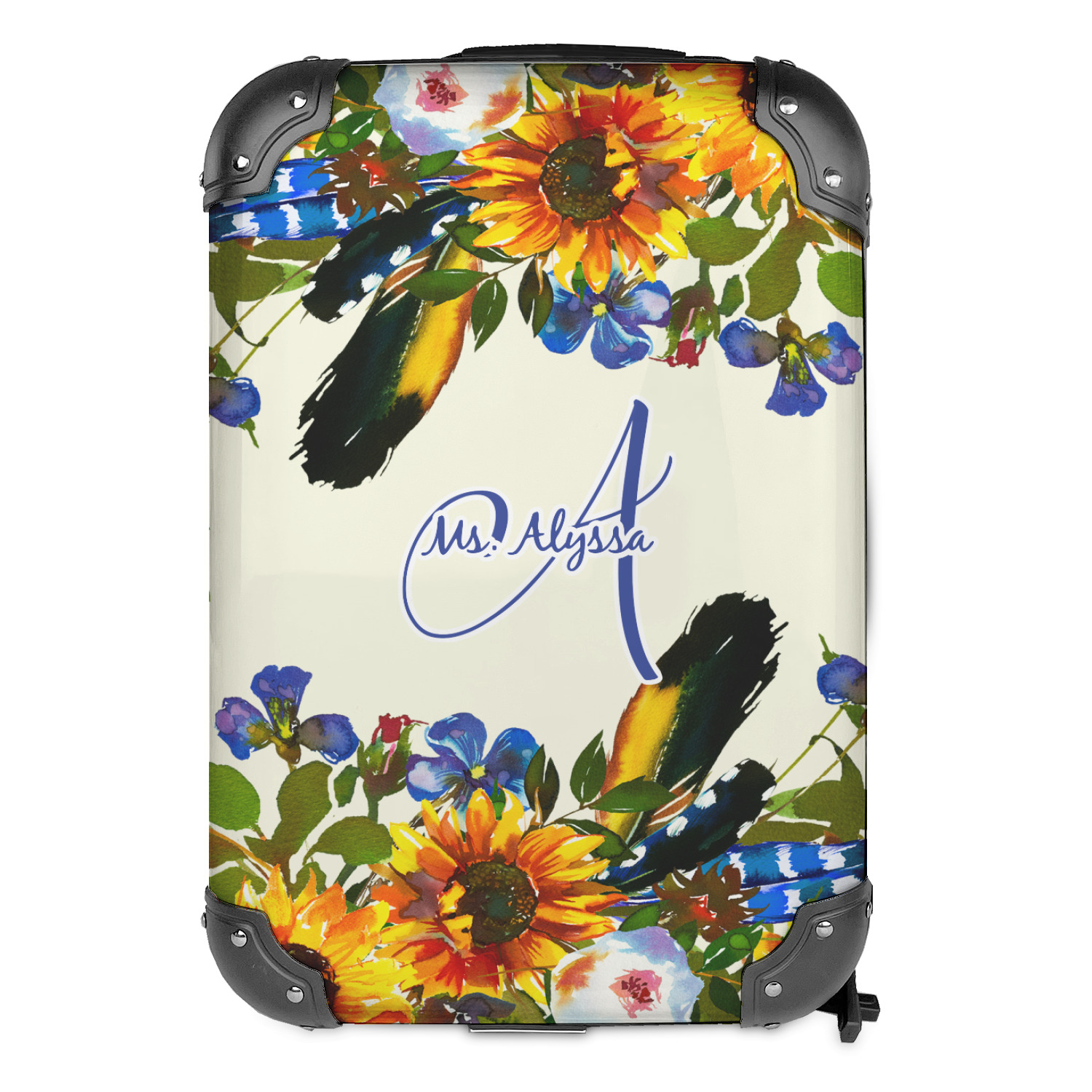 This sunflowers design template is simply beautiful. We chose to personalize it with a name & initial for the main design. We used the blue from the flower in the design and a really pale yellow background.