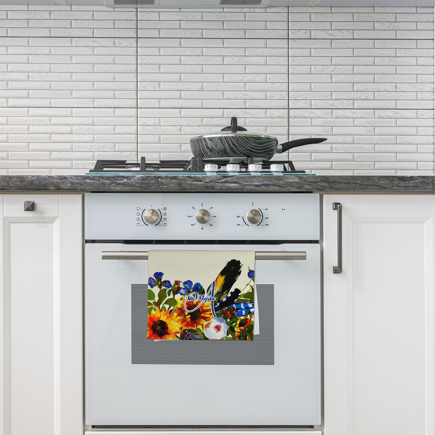 Adorn your oven's door handle or kitchen countertop with one of our kitchen towels! These towels, both beautiful and multi-functional, can serve as hand towels, dish towels, or to clean up any accidental spills on your countertop. Personalize a couple for your home, or for the home of a loved one!