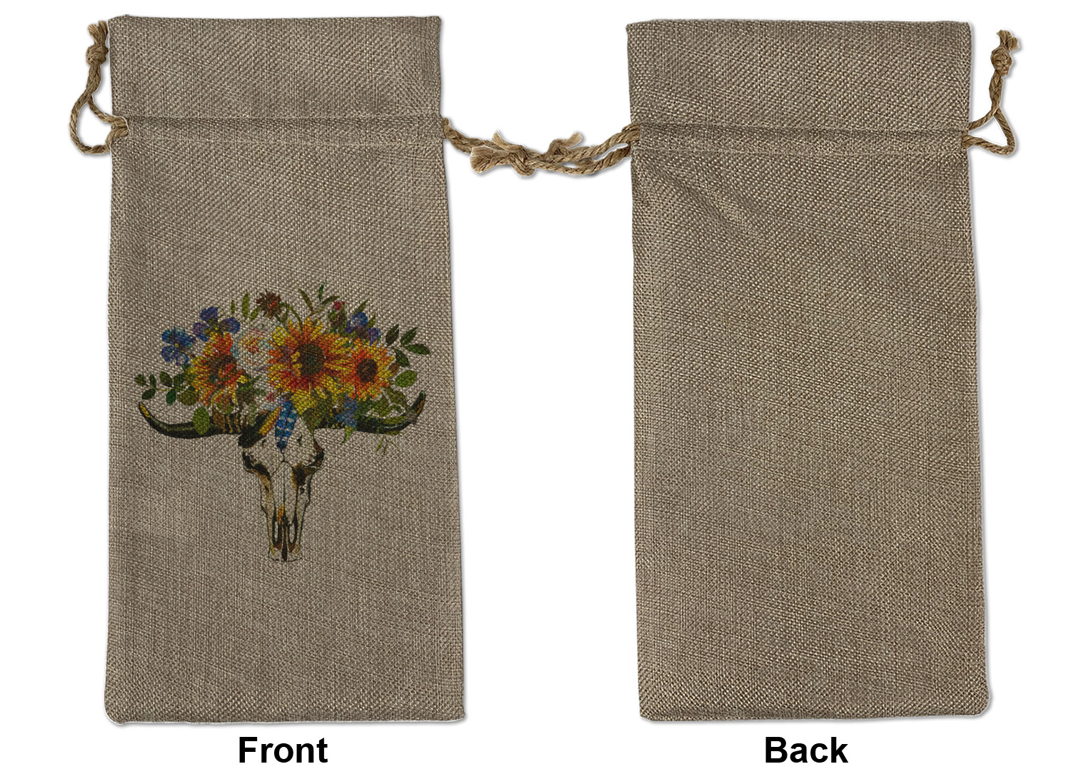 We sell our Burlap Gift Bags in 3 variant sized bags. Made with burlap polyester, each personalized bag can be secured with a twine drawstring pull. Your custom design is available to print on one side or both sides - completely up to you! The sizes of the bags measure approximately 4.5" x 6.5" for the smallest size, 6.5" x 8.0" for the medium size, and 6.5" x 13.5" for the large-sized bag.