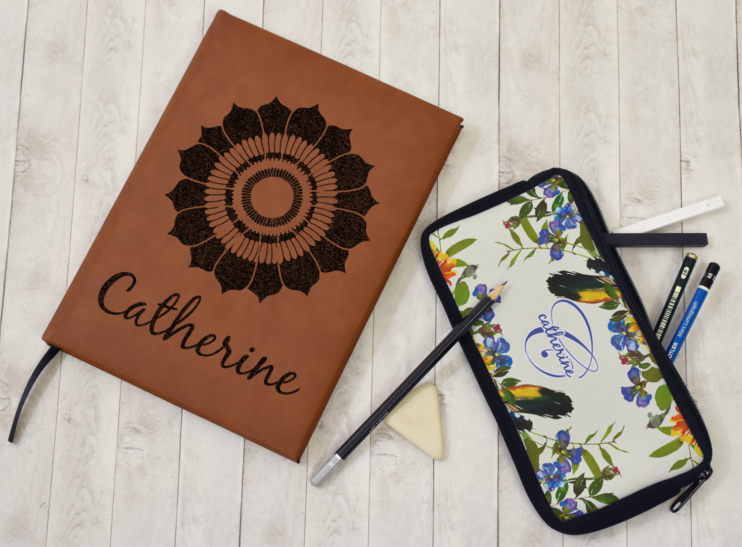 The faux leather covers are a rich cognac / rawhide color and can be customized with your design. From a simple name or monogram or a logo to a detailed mandala - the choice for customization & personalization is truly yours. Customize one of our designs or upload your own.
