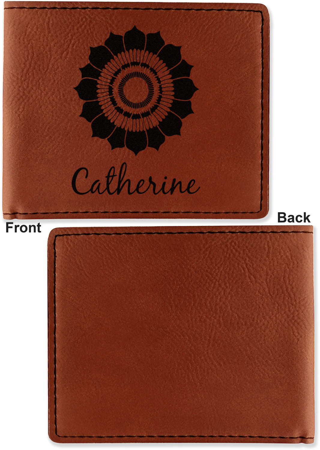 Your bifold wallet will be personalized by laser engraving, which will be a black color on the wallet. Choose a graphic, text, or monogram to personalize your wallet. There are thousands of choices in our design center.