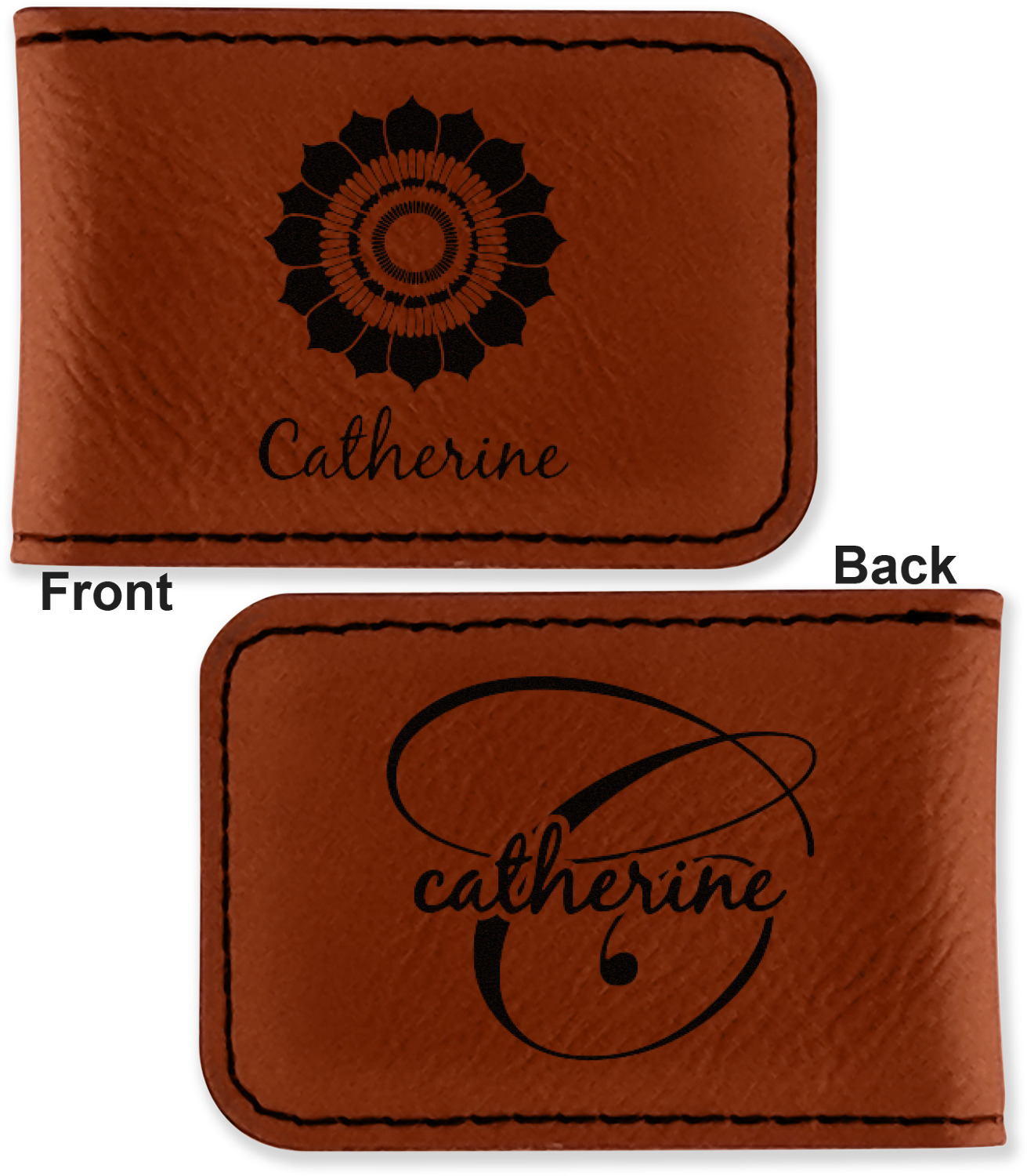 Your money clip will be laser engraved so that the design you choose will come out black. Find a fun graphic, monogram, or font to use to personalize your money clip either on just the front or the front and the back.
