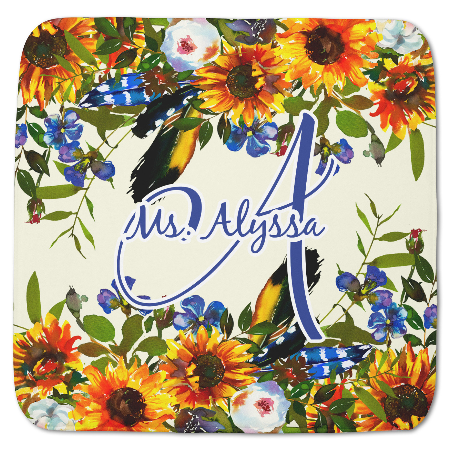This sunflowers design template is simply beautiful. We chose to personalize it with a name & initial for the main design. We used the blue from the flower in the design and a really pale yellow background.
