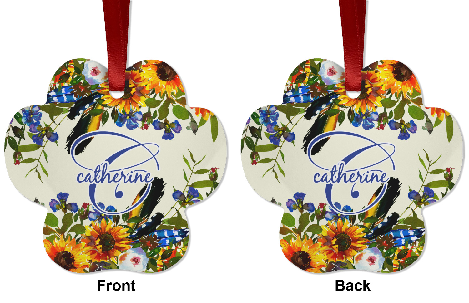 We offer double-sided printing on our personalized metal ornaments all with a gloss finish to make sure your Christmas tree continues to illuminate through the night. We offer 4 different metal ornament shapes to help express yourself or loved ones! Choose from our ball, paw print, star, or frame metal ornaments. Each metal ornament is an aluminum material sure to last you as many years as needed to share the joy and warmth of the holiday. We pair each customizable ornament with a red ribbon to tie your ornament and hang on your Christmas tree!