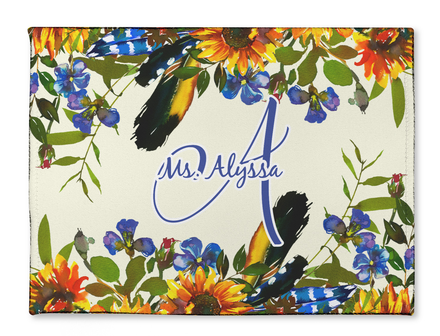 This sunflowers design template is simply beautiful. We chose to personalize it with a name & initial for the main design. We used the blue from the flower in the design and a really pale yellow background.