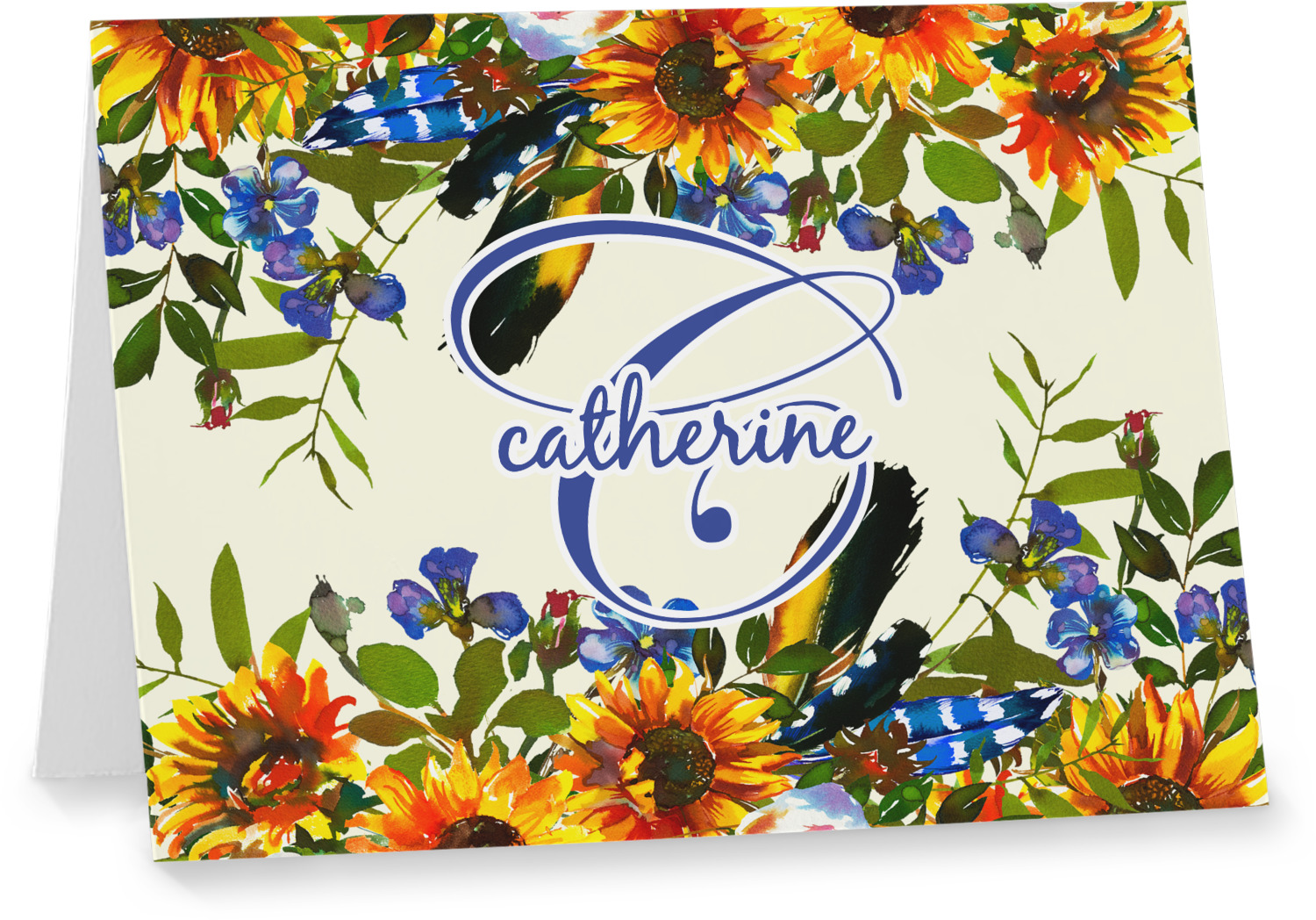 Our custom folded note cards are printed on premium 100lb. card stock and comes with white envelopes. The note card measure 5.5 by 4.25 inches and are blank on the inside for your handwritten message.