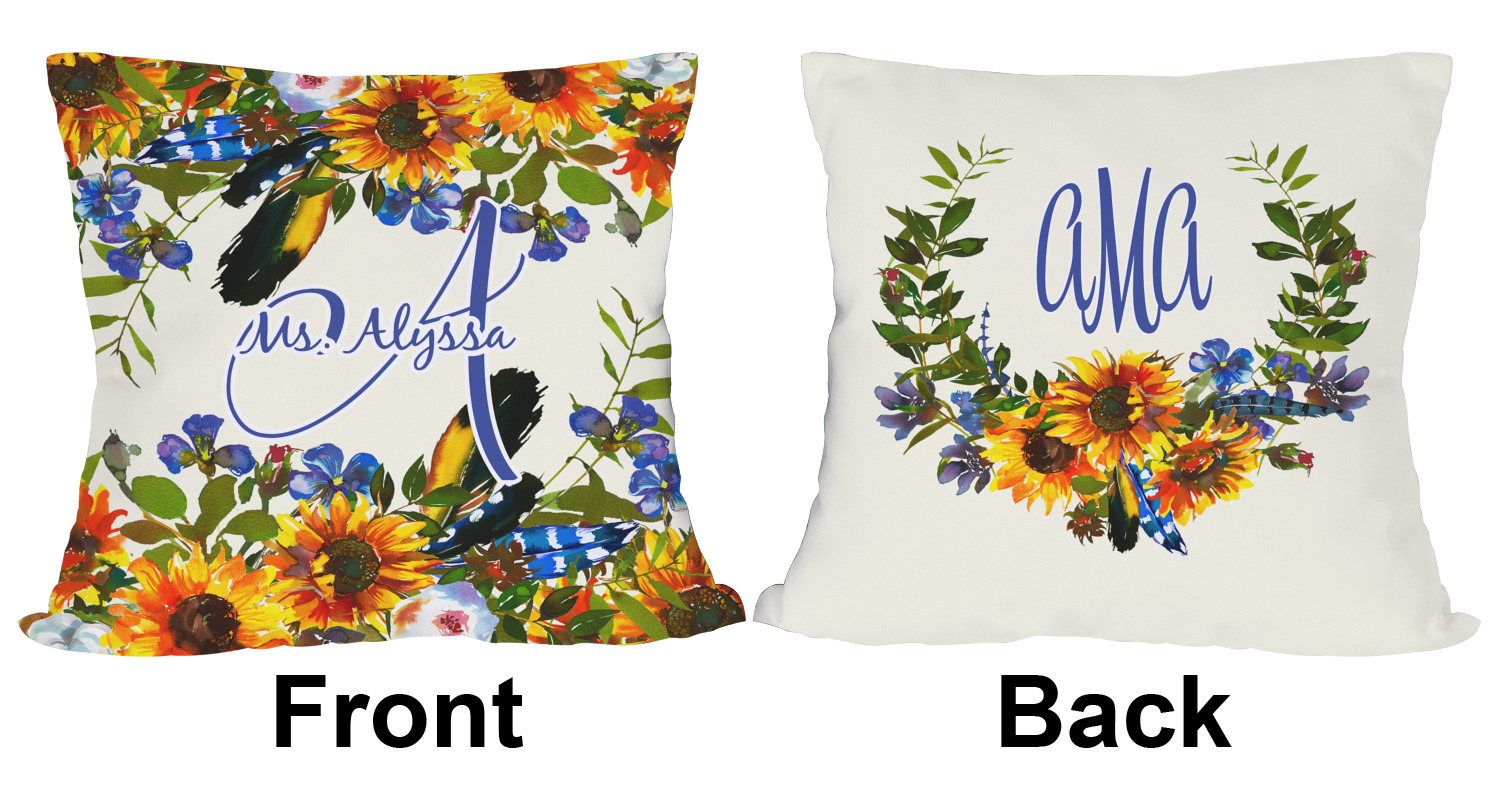 This sunflowers design template is simply beautiful. We chose to personalize it with a name & initial for the main design. We used the blue from the flower in the design and a really pale yellow background.