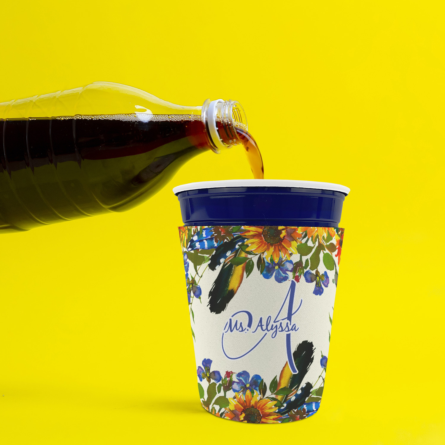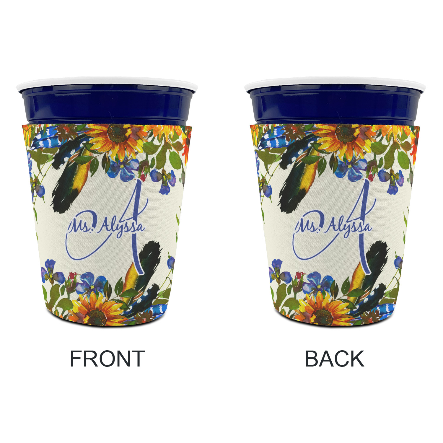 Made from neoprene with a polyester outer fabric and sewn seams, these premium quality party cup sleeves are very durable and will hold up to heavy use. They are available in 2 styles - with a bottom or just a sleeve to go around the outside of the tapered cup. The sleeve covers are about 4" tall and cover about 90% of the classic 16 oz. Solo cup.