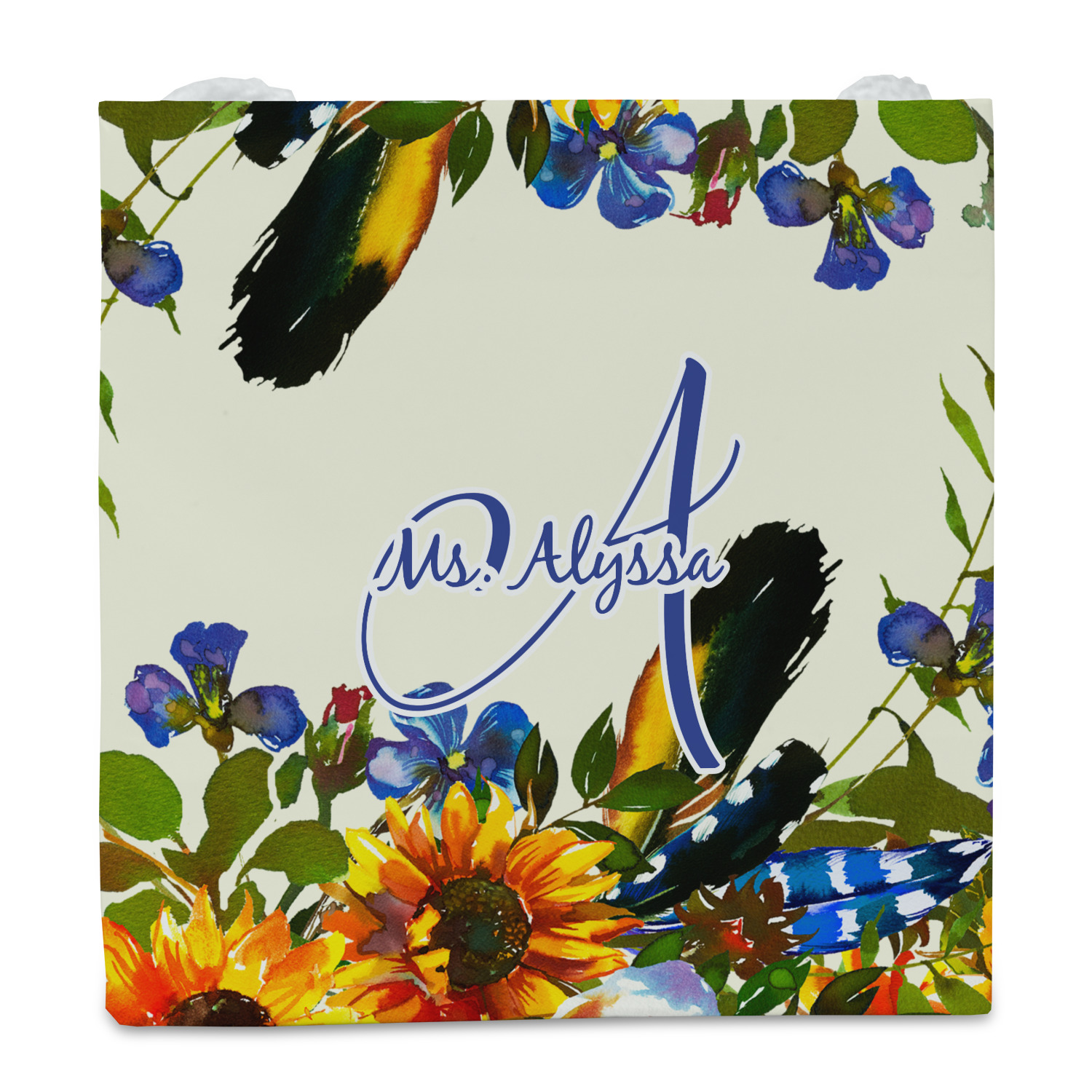 This sunflowers design template is simply beautiful. We chose to personalize it with a name & initial for the main design. We used the blue from the flower in the design and a really pale yellow background.