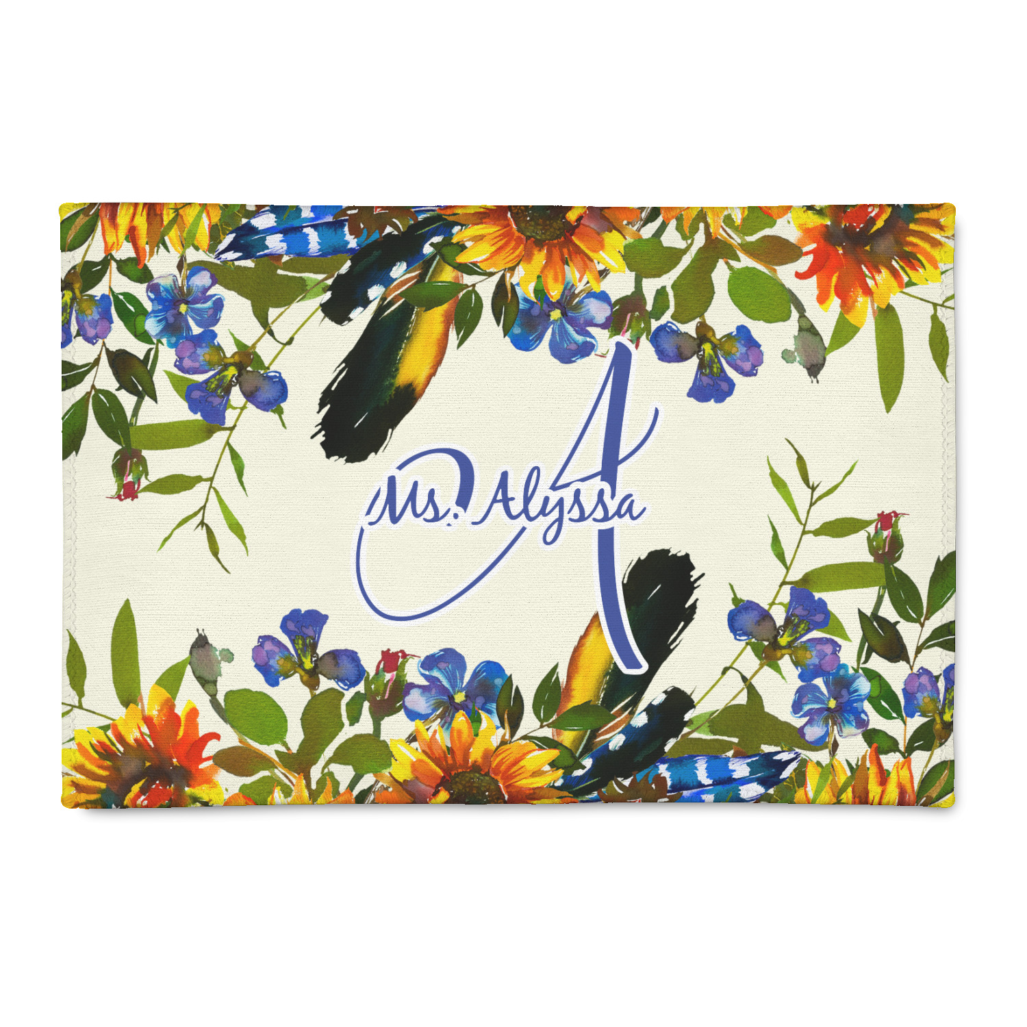 This sunflowers design template is simply beautiful. We chose to personalize it with a name & initial for the main design. We used the blue from the flower in the design and a really pale yellow background.