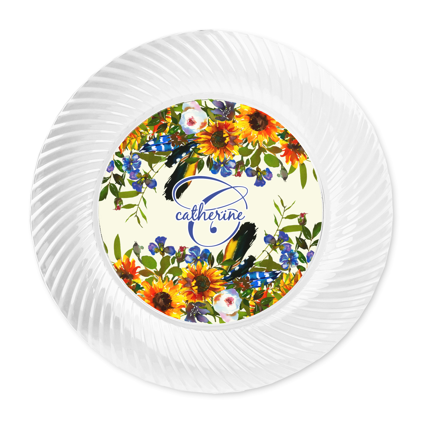 Made from a beautiful clear plastic plate as a base, your design is printed to the underside of the plate. The outside of these disposable plates has a classic swirl texture to it for a high quality look and feel.