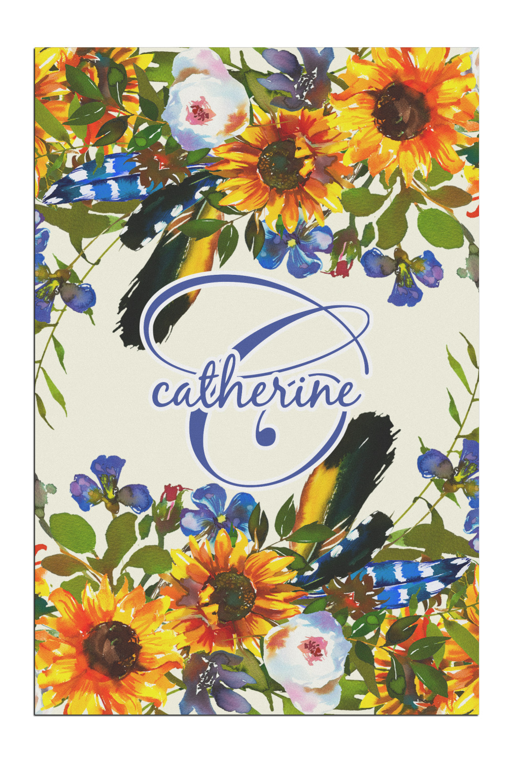 This sunflowers design template is simply beautiful. We chose to personalize it with a name & initial for the main design. We used the blue from the flower in the design and a really pale yellow background.