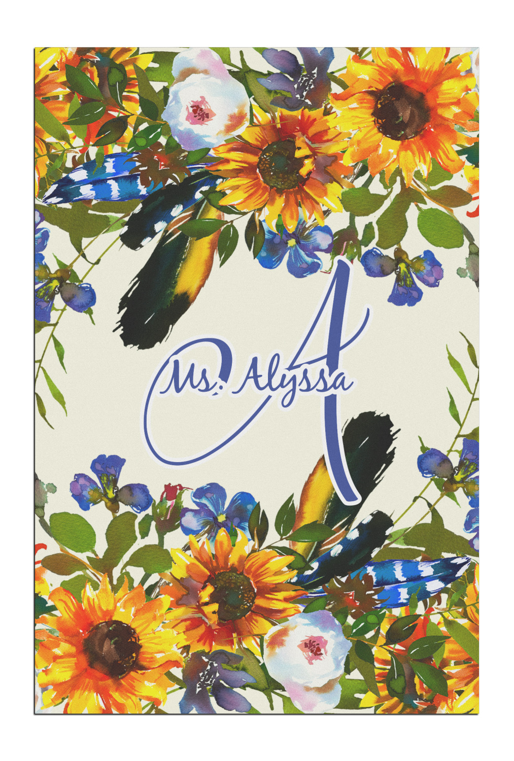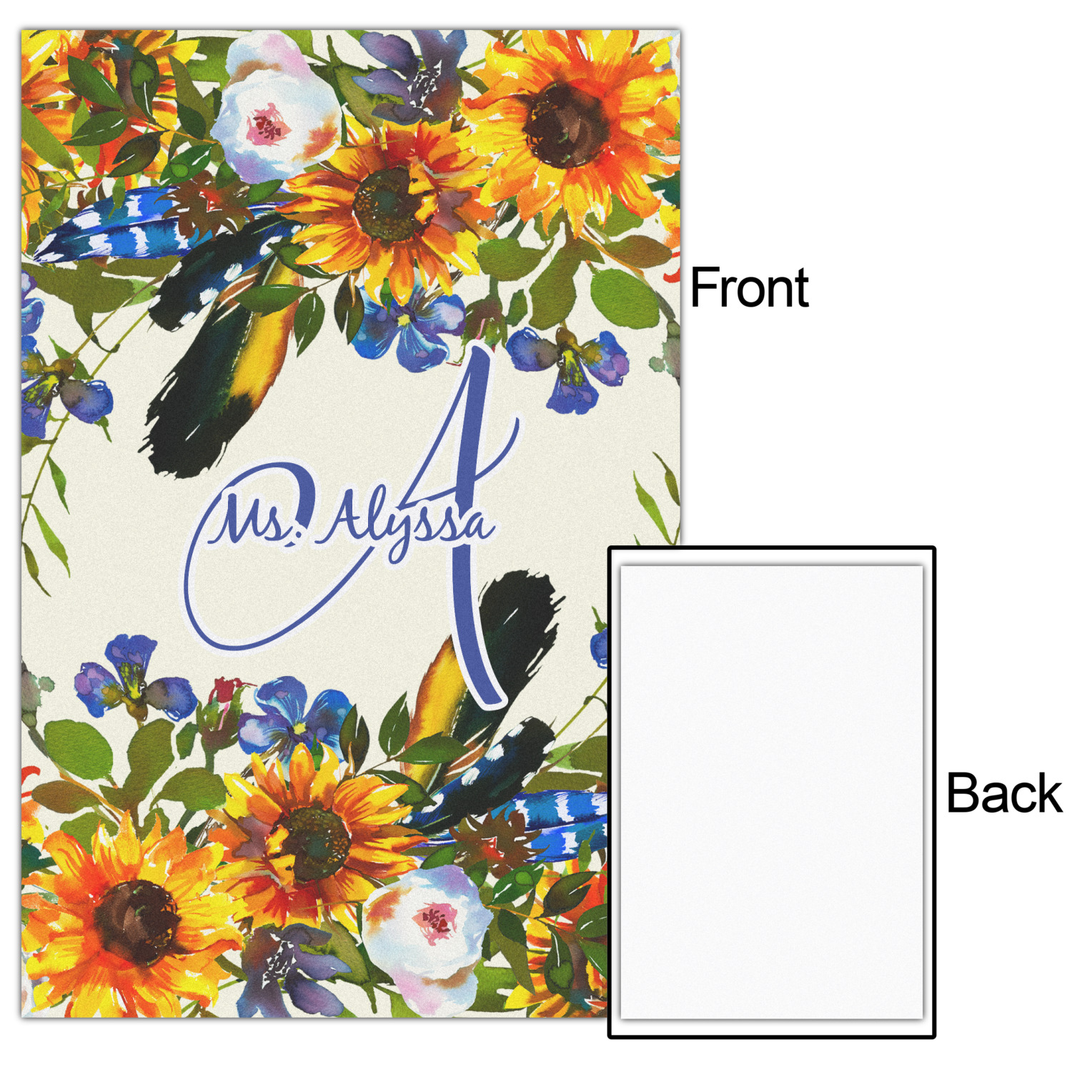 This sunflowers design template is simply beautiful. We chose to personalize it with a name & initial for the main design. We used the blue from the flower in the design and a really pale yellow background.