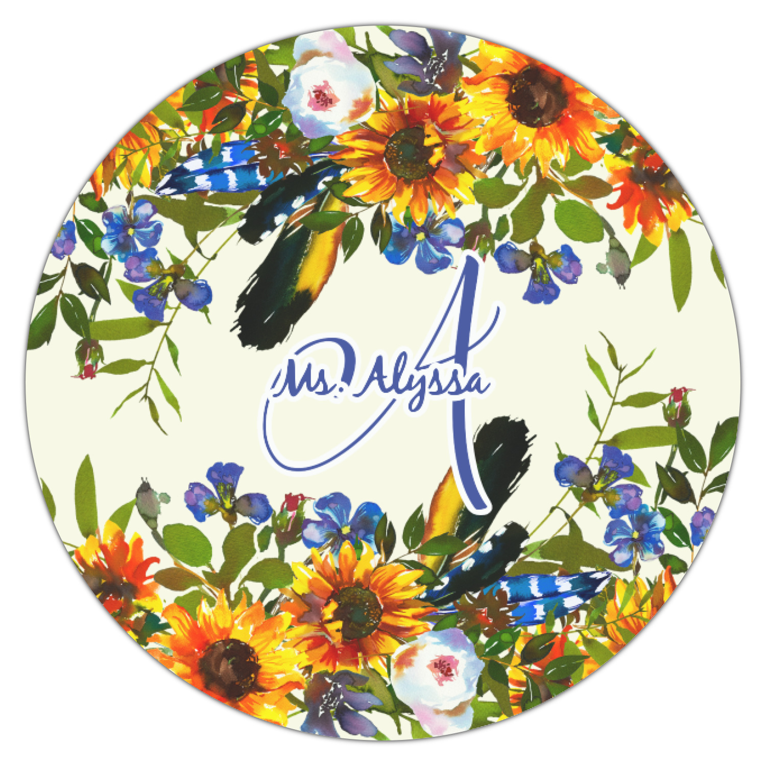 This sunflowers design template is simply beautiful. We chose to personalize it with a name & initial for the main design. We used the blue from the flower in the design and a really pale yellow background.