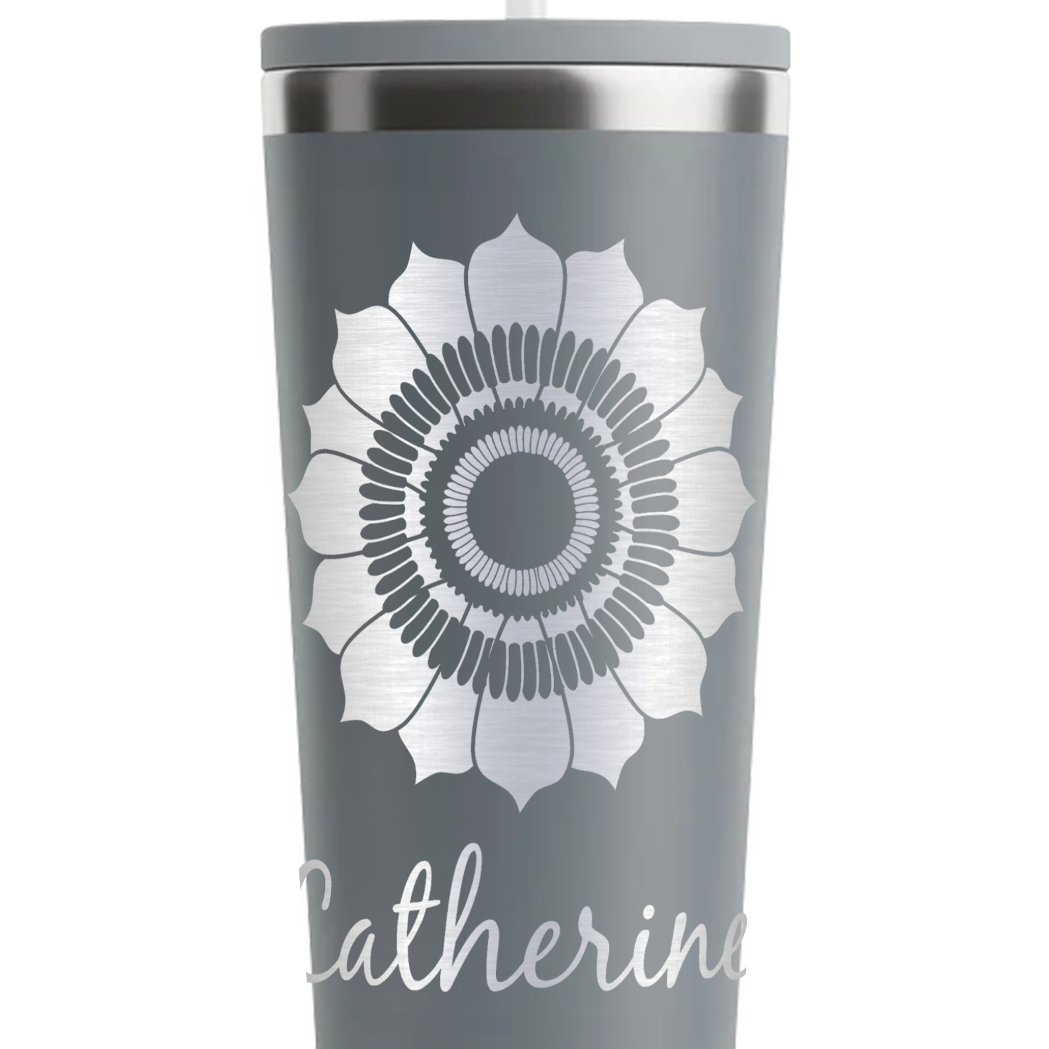 This sunflowers design template is simply beautiful. We chose to personalize it with a name & initial for the main design. We used the blue from the flower in the design and a really pale yellow background.