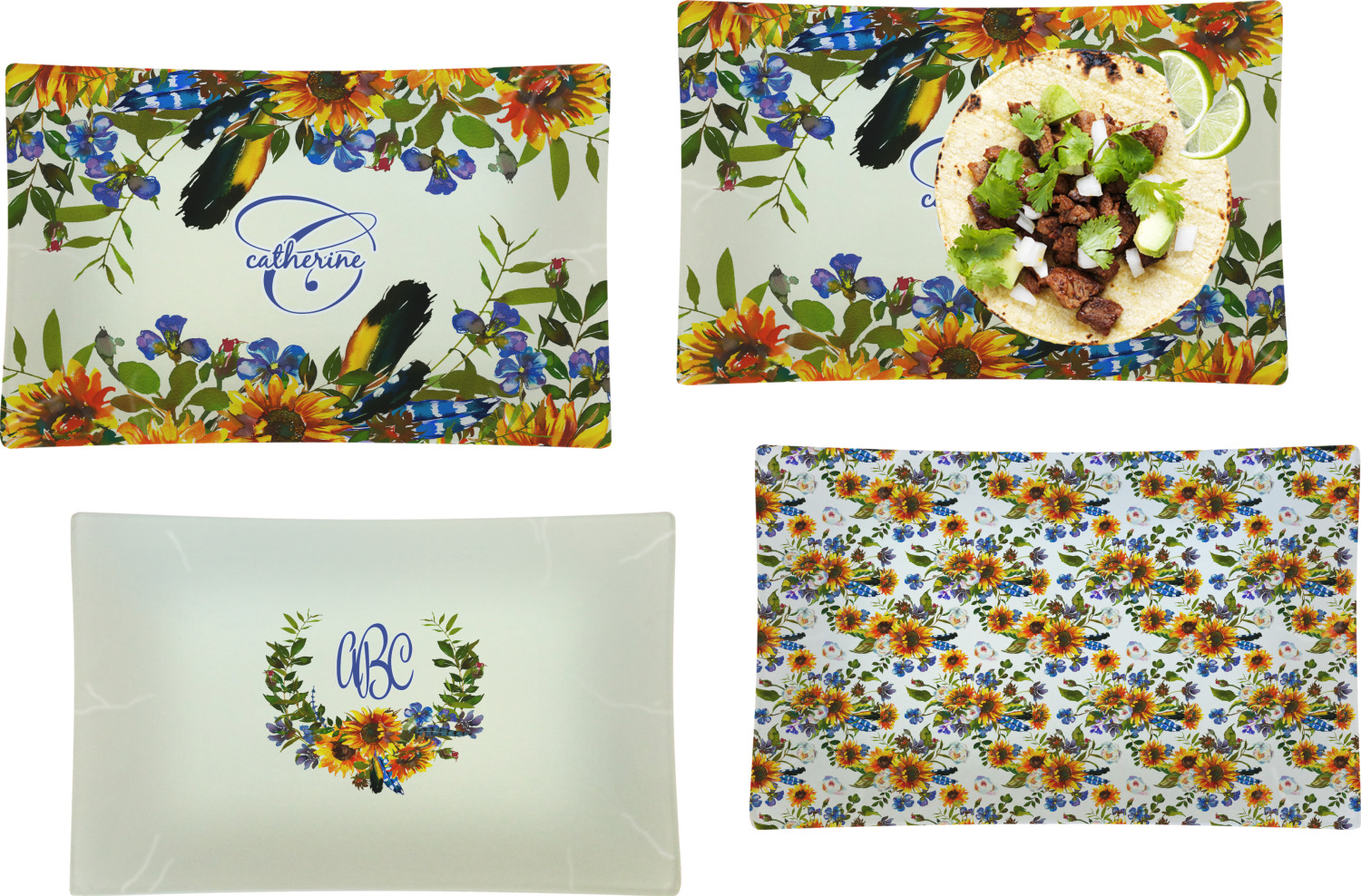 This rectangular plate is about 14" in width and 10" in height; the perfect size for lunch or dinner. These plates are dishwasher safe - proving high in function and in beauty.