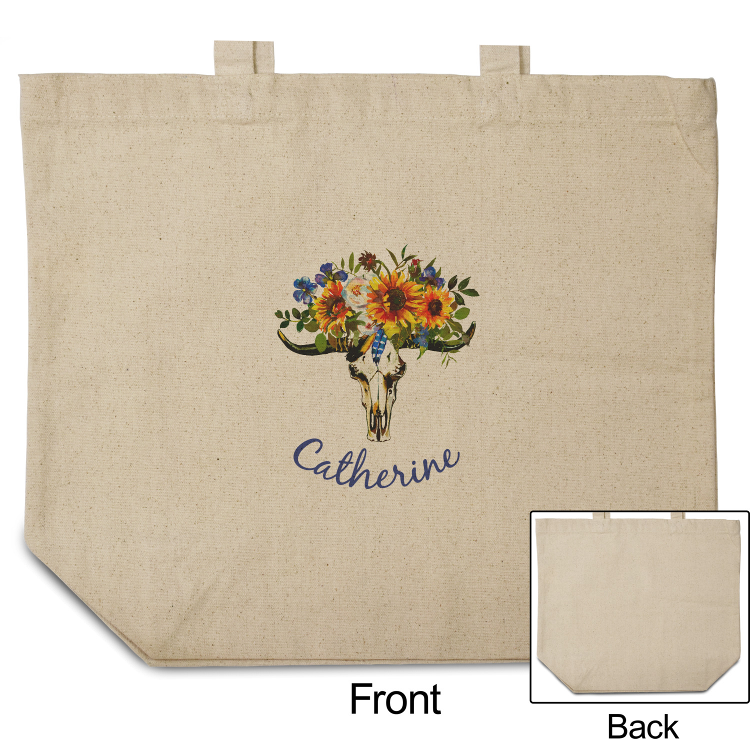 These cotton totes are washable and easy to care for, and they can be folded flat for storage. Your artwork, logo, or photo is printed in full color directly on the cotton tote in the front.