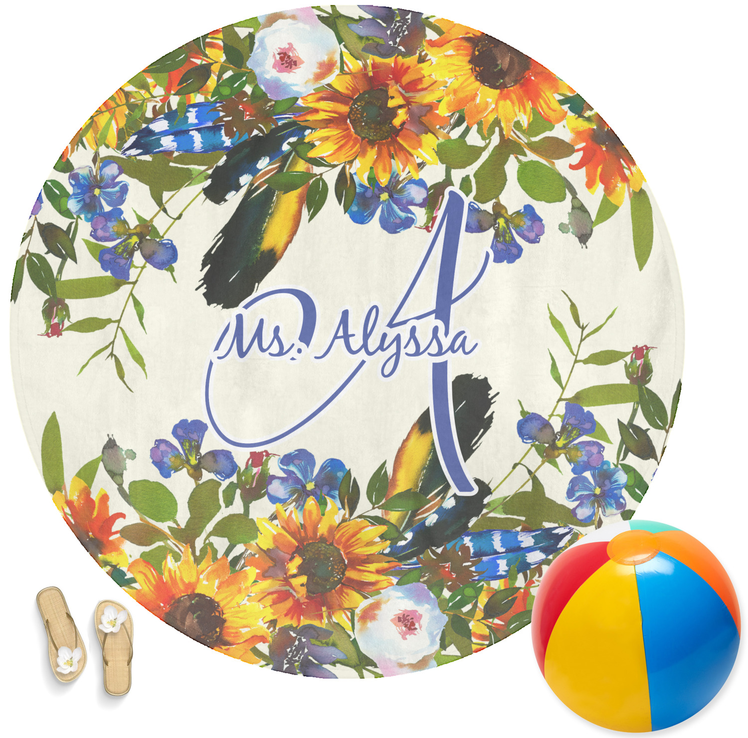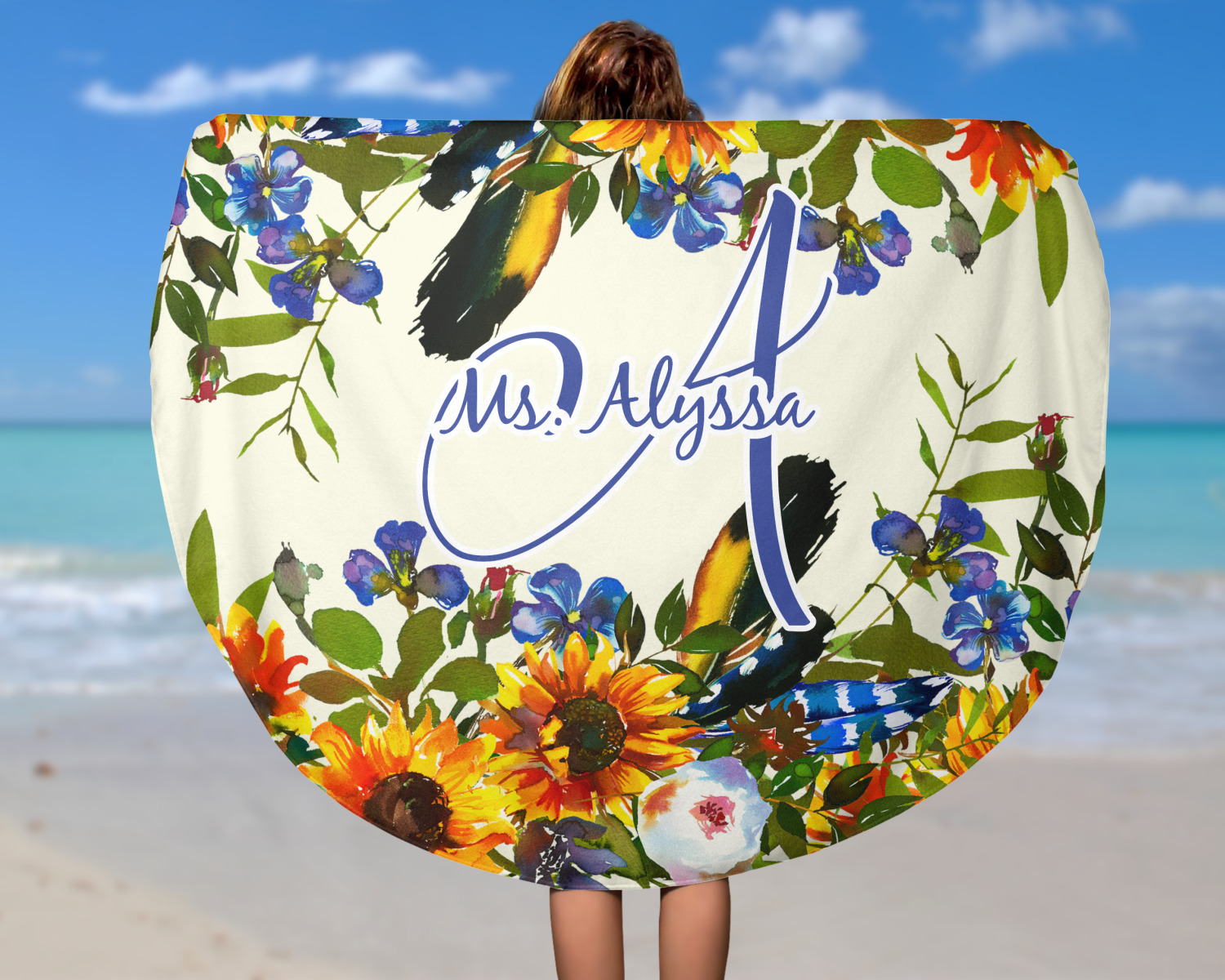 Think out of the box on your next beach, pool, or picnic day in style on your personalized round towel. This must have durable accessory is the perfect size for keeping you, and your possessions out of the sand. Sprawl out in the sun without getting your hands dirty, the unique round design allows for a full range of motion.
