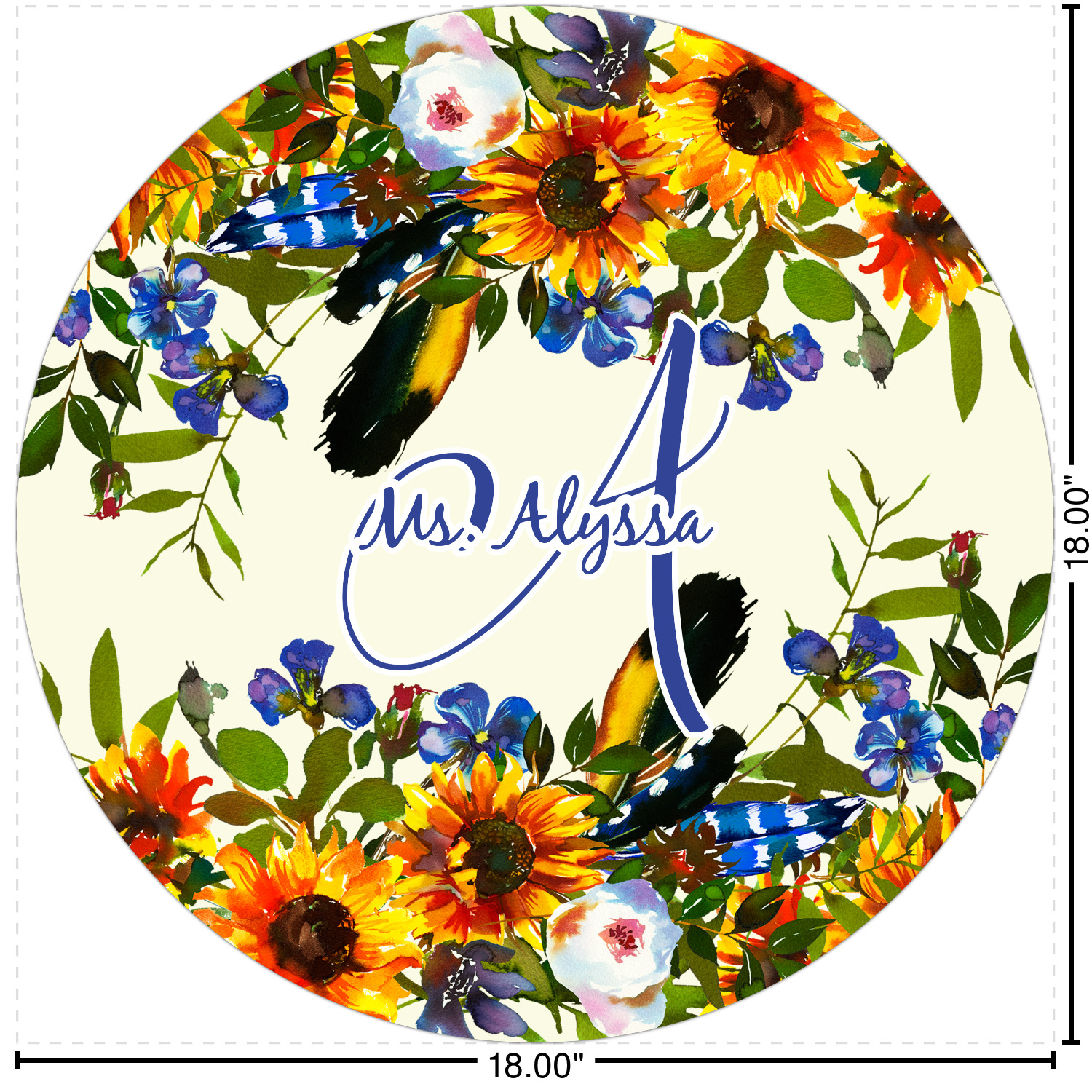 This sunflowers design template is simply beautiful. We chose to personalize it with a name & initial for the main design. We used the blue from the flower in the design and a really pale yellow background.