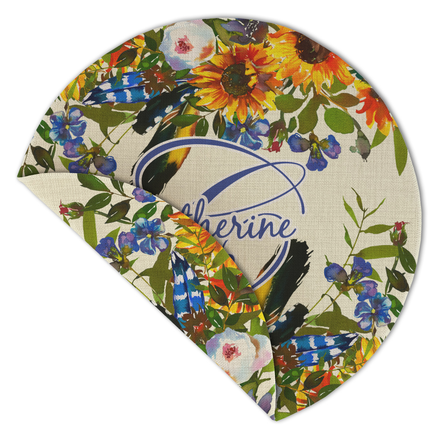 This sunflowers design template is simply beautiful. We chose to personalize it with a name & initial for the main design. We used the blue from the flower in the design and a really pale yellow background.