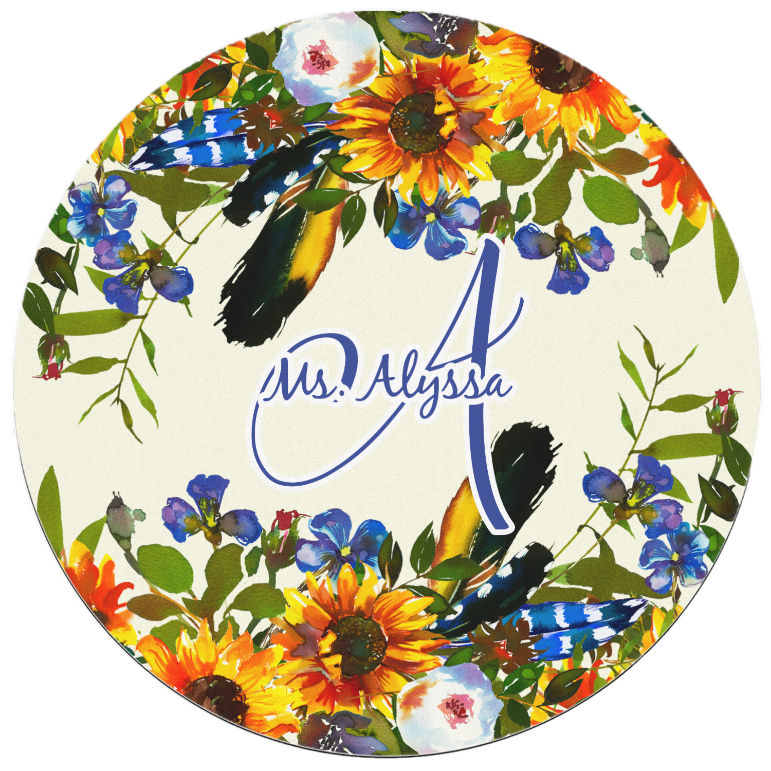 This sunflowers design template is simply beautiful. We chose to personalize it with a name & initial for the main design. We used the blue from the flower in the design and a really pale yellow background.