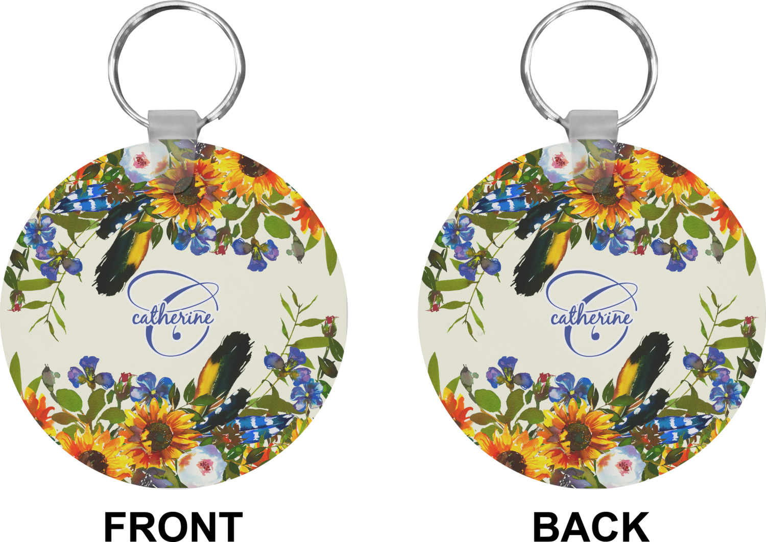Our personalized keychains attach to the included metal, split key ring with a plastic, removable snap. Since a metal ring is included with your purchase, you have the liberty to keep your keys together on the ring, with or without your unique keychain. We offer this keychain in three different shapes: circle, heart, or diamond. We print your personalized design(s) on both sides of the key chain, and the surface has a glossy, reflective finish that only emphasizes your design. Each keychain is approximately 2.25 by 2.25 inches.
