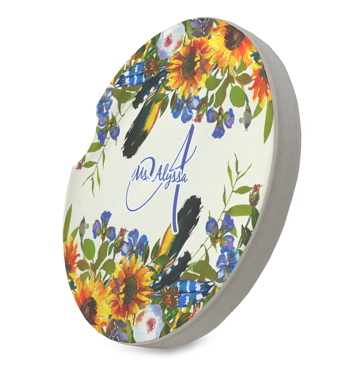 These sandstone coasters are round, robust, and feature a smoothed glossy side to exhibit your customized design. With a 2.5 inch diameter, these stone coasters will fit snugly inside most cup holders. This model also features a semi-circle shaped divot that allows for easy removal, despite the tight fit. You can purchase these car cup holder coasters in a pair, or singularly, depending on your needs.