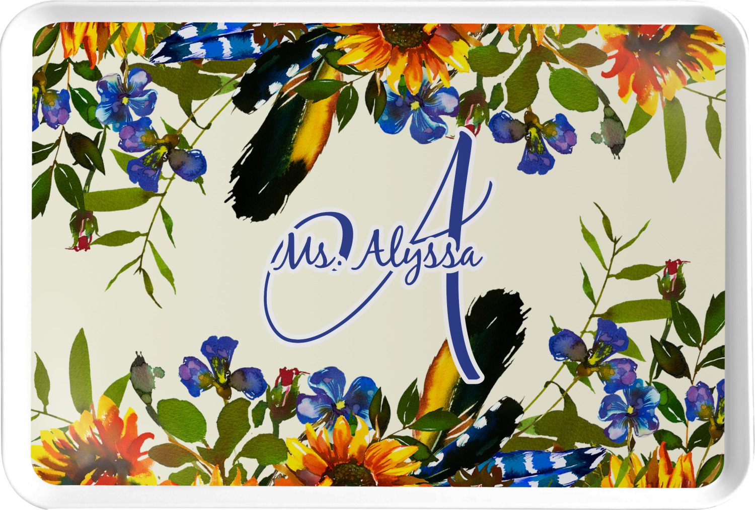 Made from a heavy melamine, these decorative trays are break resistant and are BPA free. At 14" x 9.25", these serving dishes are spacious enough to accommodate several drinks, bowls, or more. The tray features ridges underneath that allow for a sturdy stance upon any table or counter-top. We display your customization at the bottom of the tray's interior, while the remaining sides of the tray are a chic white.