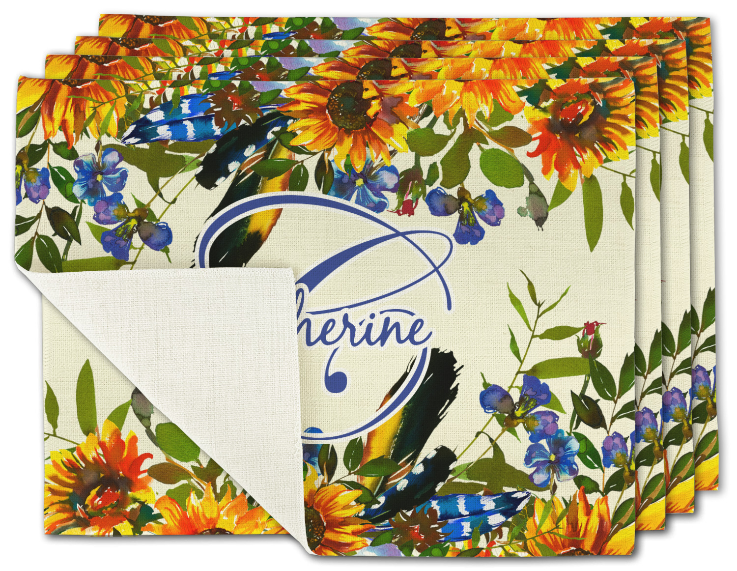 This sunflowers design template is simply beautiful. We chose to personalize it with a name & initial for the main design. We used the blue from the flower in the design and a really pale yellow background.
