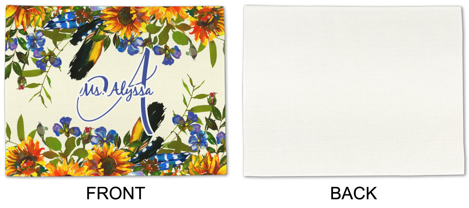 This sunflowers design template is simply beautiful. We chose to personalize it with a name & initial for the main design. We used the blue from the flower in the design and a really pale yellow background.