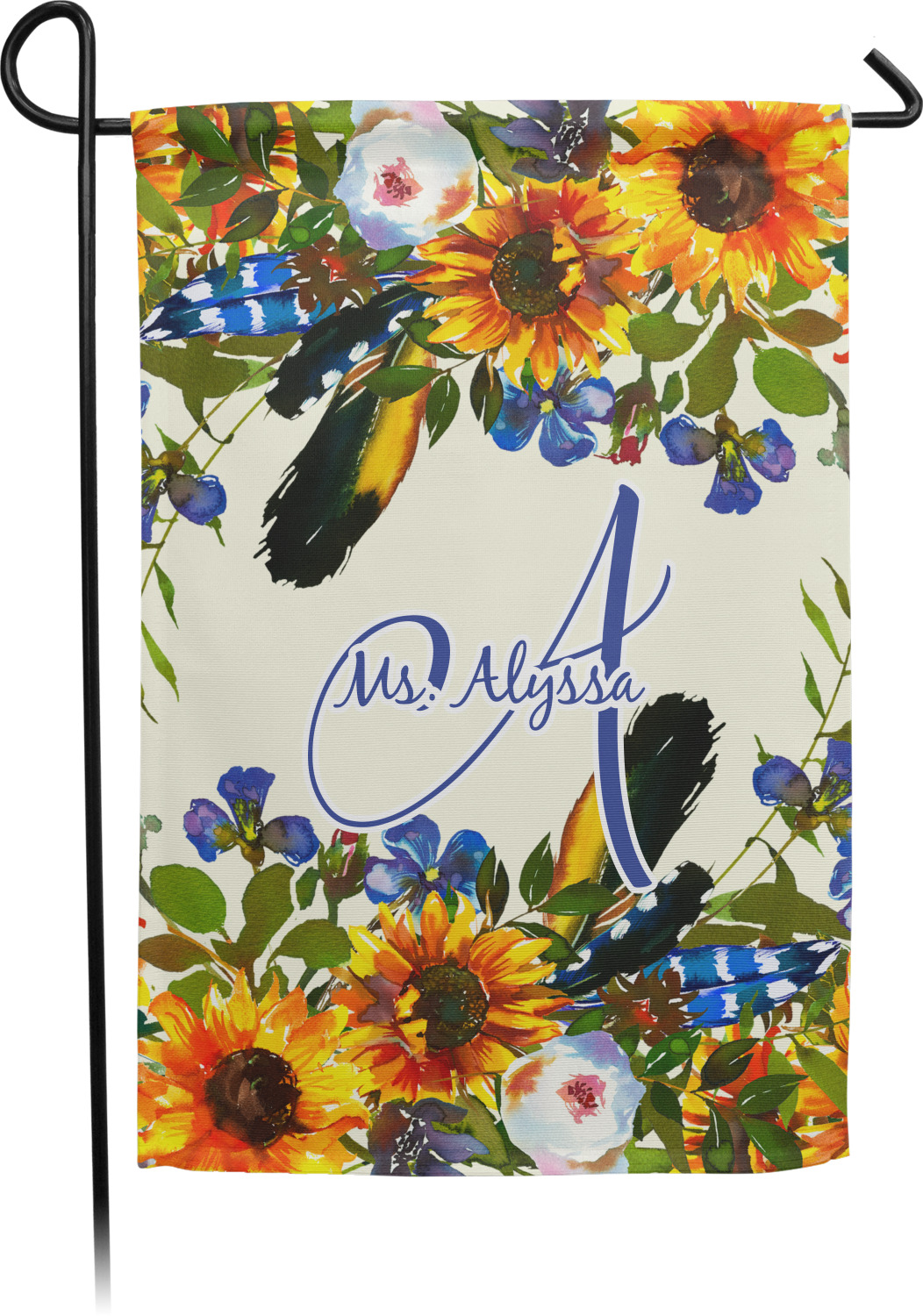 This sunflowers design template is simply beautiful. We chose to personalize it with a name & initial for the main design. We used the blue from the flower in the design and a really pale yellow background.