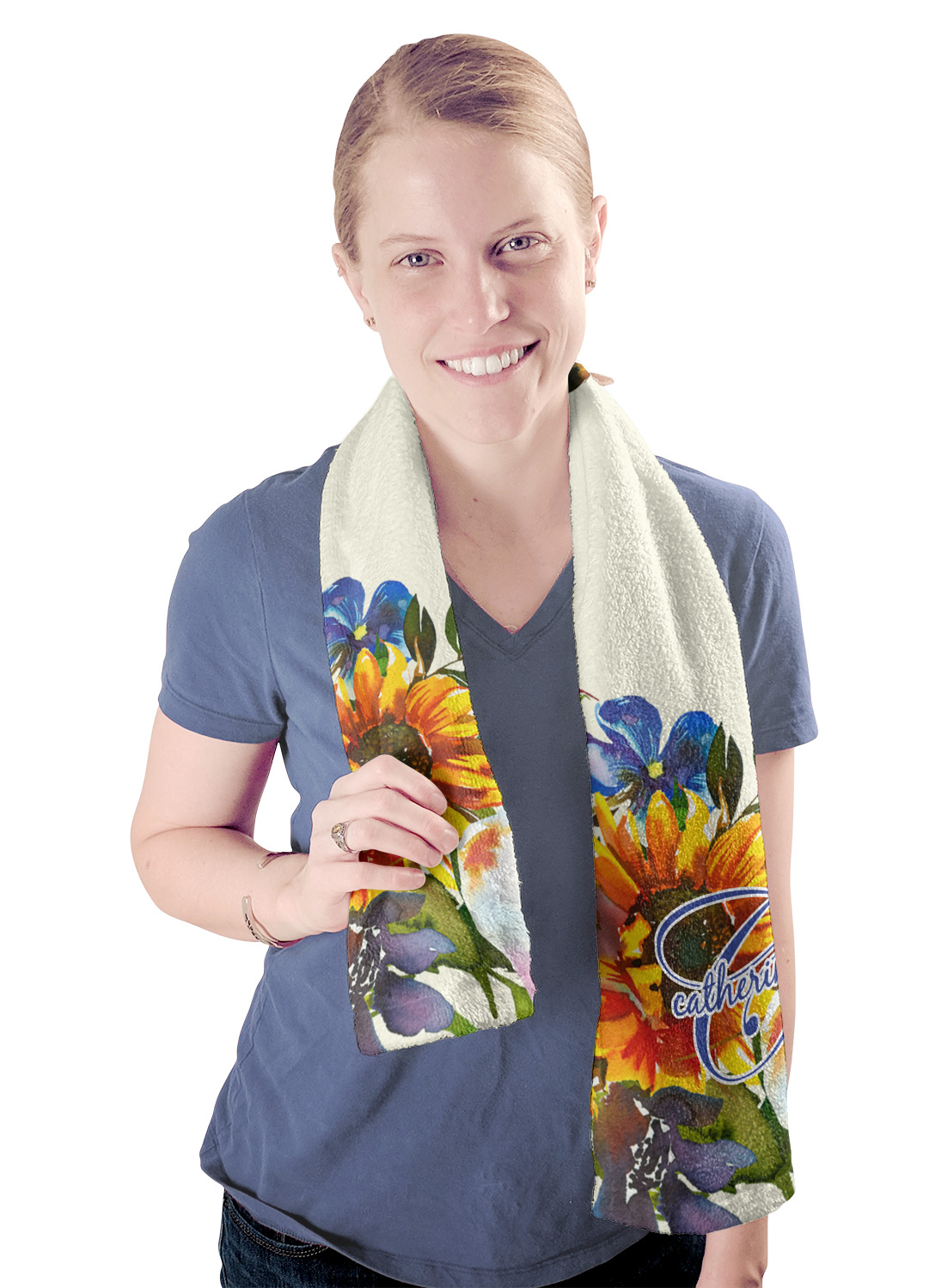 These towels are 44" x 12", which are the perfect size for hanging around your neck on the treadmill or wiping your brow after a hard workout. They are full-print towels with your very own design printed right on the front! They are perfect for soaking up moisture and are quite soft against your skin.