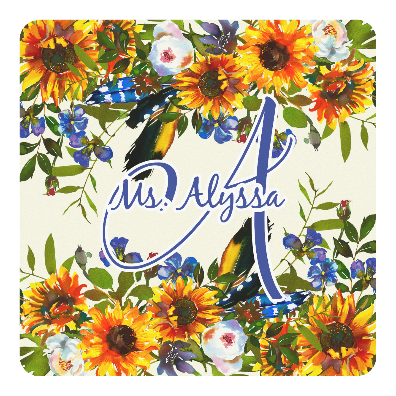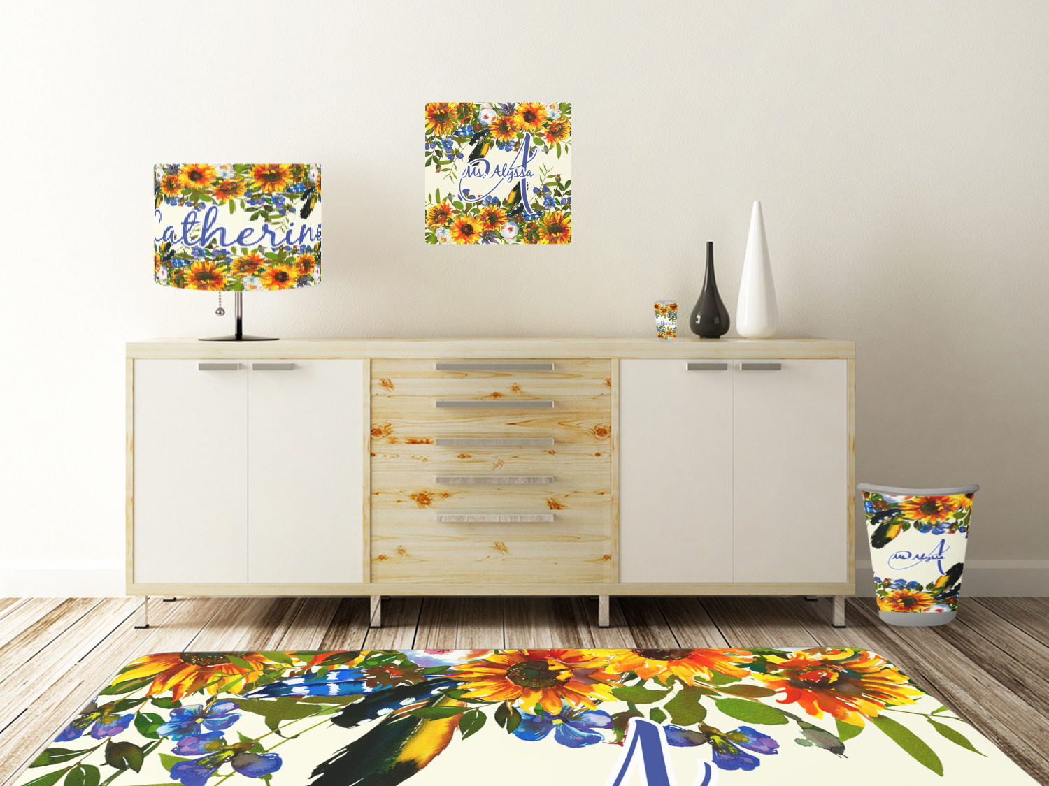 This sunflowers design template is simply beautiful. We chose to personalize it with a name & initial for the main design. We used the blue from the flower in the design and a really pale yellow background.
