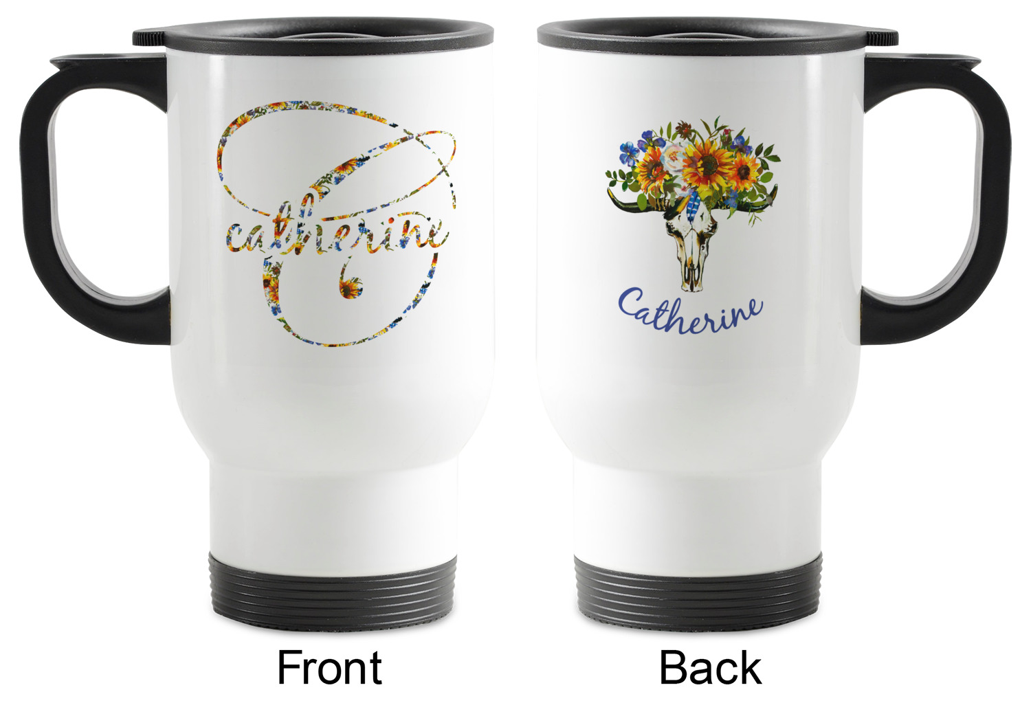 This stainless steel travel mug is a great way to take your favorite beverage with you when you're on the go!