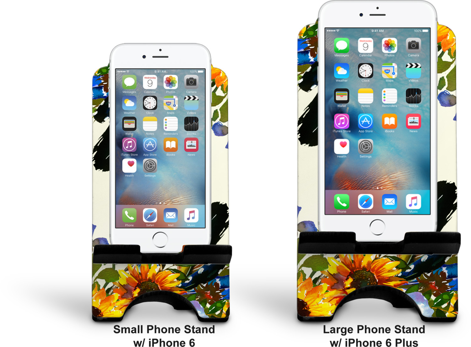 To meet your needs, we offer four variations of this IPhone stand. The backboard of the first version is shaped as a plain, yet sleek rectangle, and is available in two sizes. Our smaller size is approximately 4 by 3.25 by 7 inches, while the larger model is 4 by 3.77 by 8.5 inches. Alongside this model, we also provide you with a more decorative option. The upper part of our second version features a curved edge, for a classy, suave appearance. This phone holder is also sold in two sizes: a smaller version, which is 4 by 3.25 by 7 inches, and our larger model, which is 4 by 3.77 by 8.5 inches. Both models will support large phones, but the larger model is better if you wish to proudly display your personalized design.